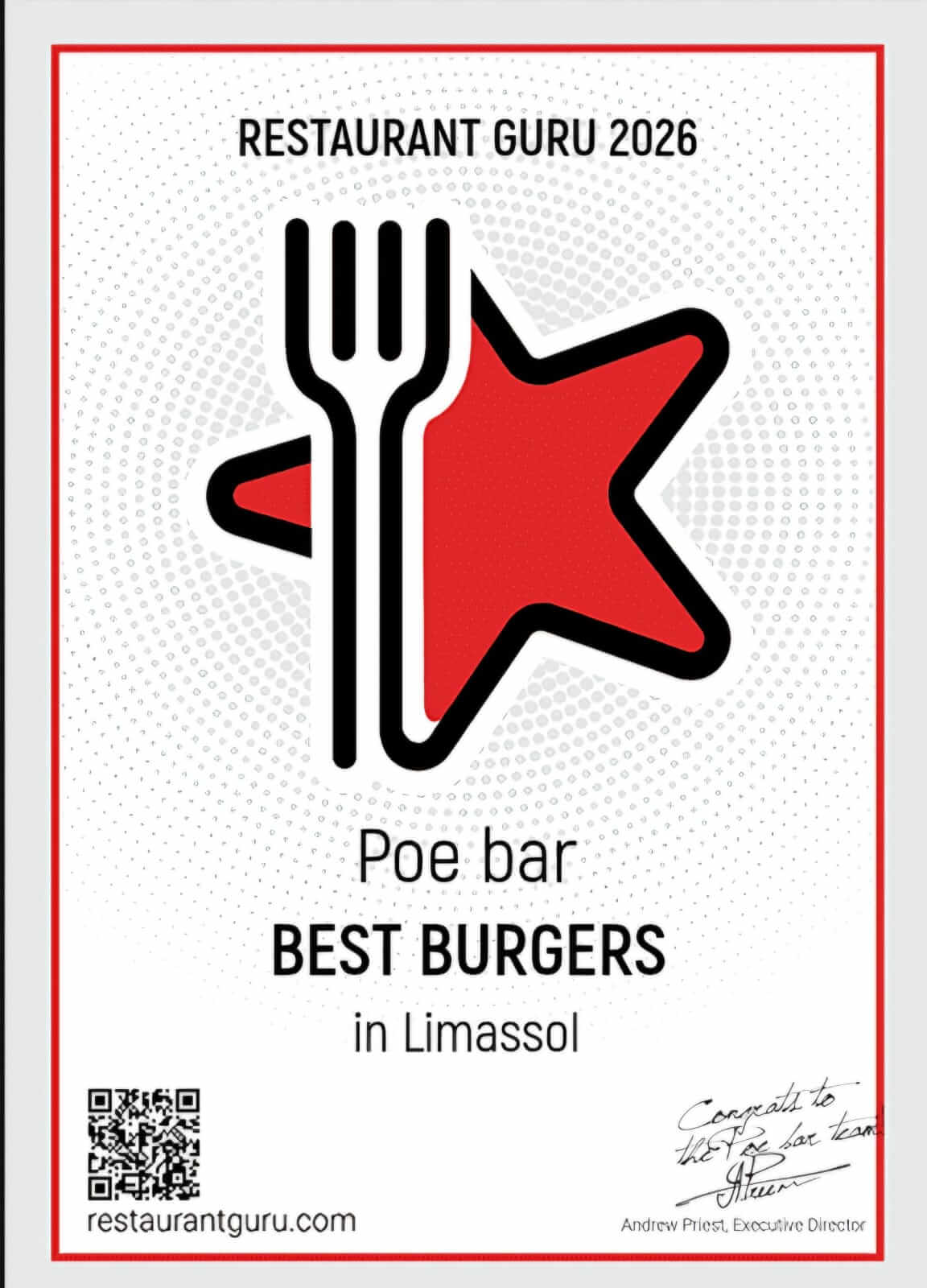 A hidden gem in Limassol! The moment I walked into Poe Bar, I felt like I'd stepped into a Victorian novel. The dim lighting, vintage decor, and wall full of books set the mood perfectly. I had the Angus burger with the Jack Daniel’s sauce — incredible! The cocktail list was so creative, I wanted to try them all. Highly recommend for a romantic date or a cozy night out.